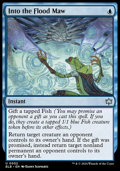 Gift a tapped Fish (You may promise an opponent a gift as you cast this spell. If you do, they create a tapped 1/1 blue Fish creature token before its other effects.) Return target creature an opponent controls to its owner's hand. If the gift was promised, instead return target nonland permanent an opponent controls to its owner's hand.