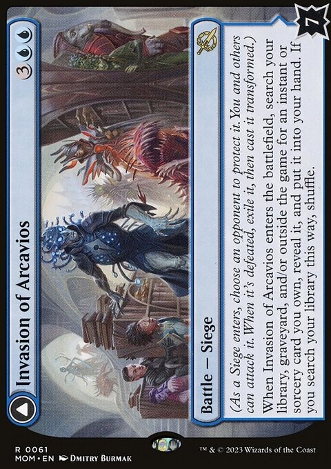 When Invasion of Arcavios enters the battlefield, search your library, graveyard, and/or outside the game for an instant or sorcery card you own, reveal it, and put it into your hand. If you search your library this way, shuffle.