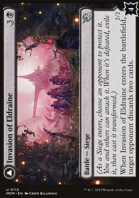 When Invasion of Eldraine enters the battlefield, target opponent discards two cards.