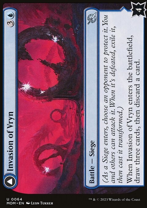 When Invasion of Vryn enters the battlefield, draw three cards, then discard a card.