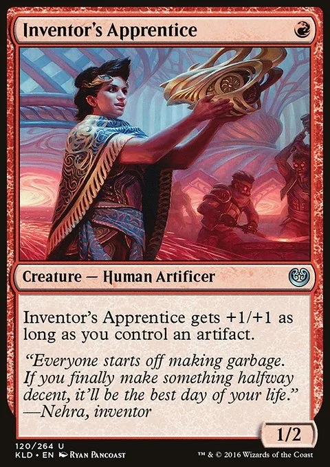 Inventor's Apprentice gets +1/+1 as long as you control an artifact.