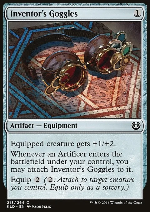 Equipped creature gets +1/+2. Whenever an Artificer you control enters, you may attach this Equipment to it. Equip {2} ({2}: Attach to target creature you control. Equip only as a sorcery.)