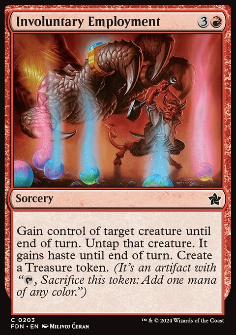 Gain control of target creature until end of turn. Untap that creature. It gains haste until end of turn. Create a Treasure token. (It's an artifact with "{T}, Sacrifice this token: Add one mana of any color.")
