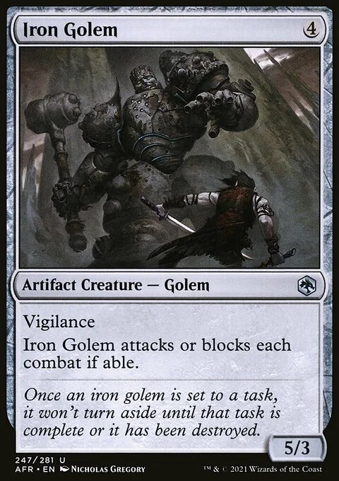Vigilance Iron Golem attacks or blocks each combat if able.