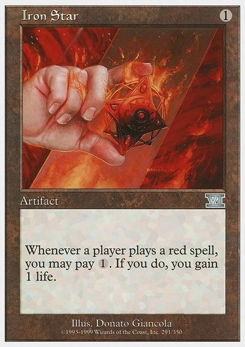 Whenever a player plays a red spell, you may pay 1. If you do, you gain 1 life.