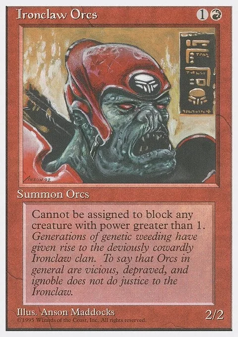 Ironclaw Orcs can't block creatures with power 2 or greater.
