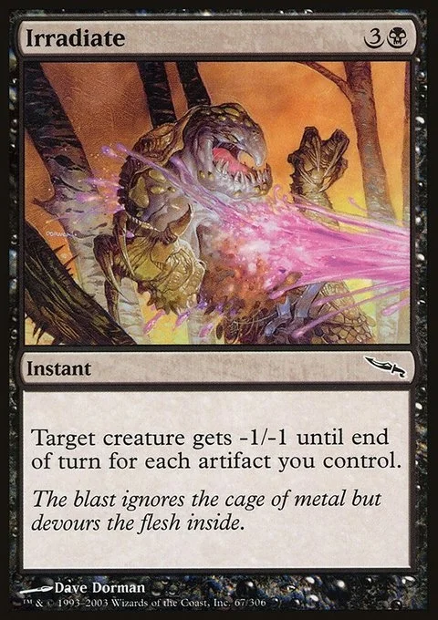 Target creature gets -1/-1 until end of turn for each artifact you control.