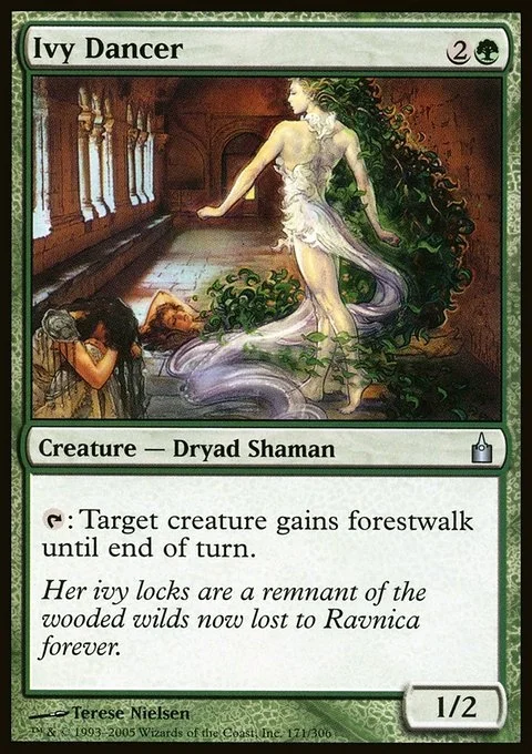 {T}: Target creature gains forestwalk until end of turn. (It can't be blocked as long as defending player controls a Forest.)