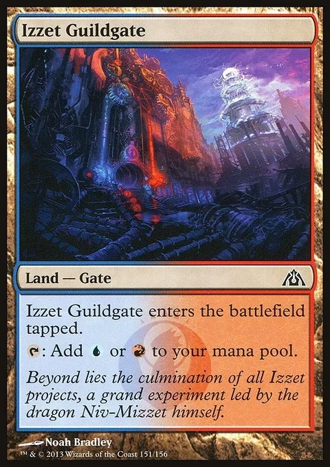 Izzet Guildgate enters the battlefield tapped. {T}: Add {U} or {R}.