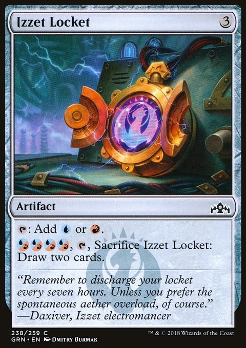 {T}: Add {U} or {R}. {U/R}{U/R}{U/R}{U/R}, {T}, Sacrifice this artifact: Draw two cards.