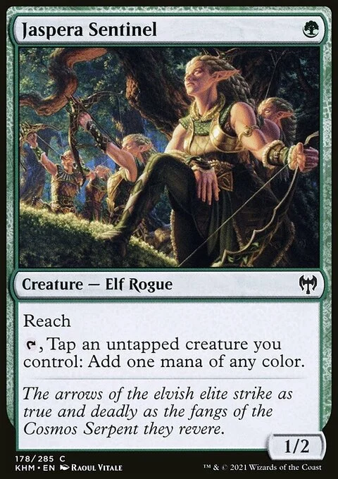 Reach {T}, Tap an untapped creature you control: Add one mana of any color.