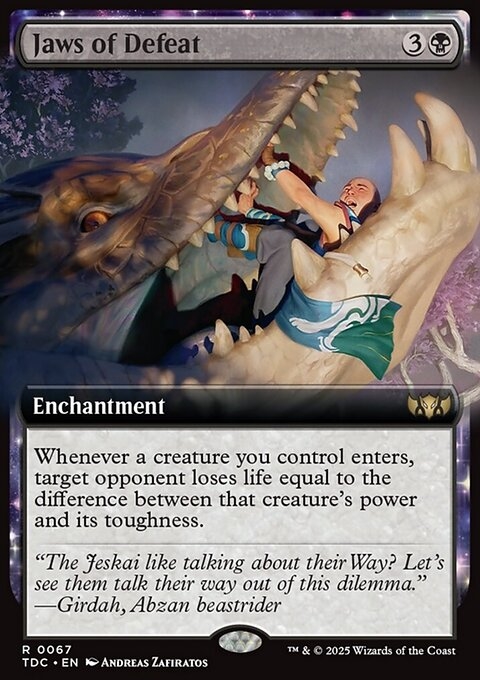 Whenever a creature you control enters, target opponent loses life equal to the difference between that creature's power and its toughness.