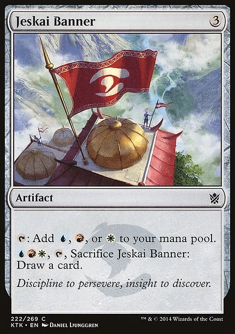 {T}: Add {U}, {R}, or {W}. {U}{R}{W}, {T}, Sacrifice Jeskai Banner: Draw a card.