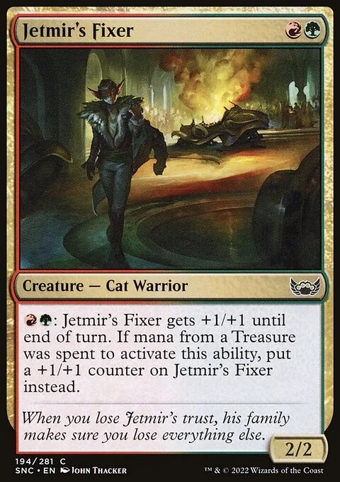 {R}{G}: This creature gets +1/+1 until end of turn. If mana from a Treasure was spent to activate this ability, put a +1/+1 counter on this creature instead.