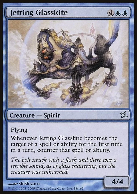 Flying Whenever Jetting Glasskite becomes the target of a spell or ability for the first time each turn, counter that spell or ability.