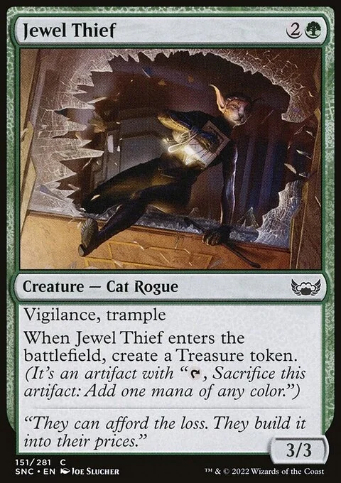 Vigilance, trample When this creature enters, create a Treasure token. (It's an artifact with "{T}, Sacrifice this token: Add one mana of any color.")