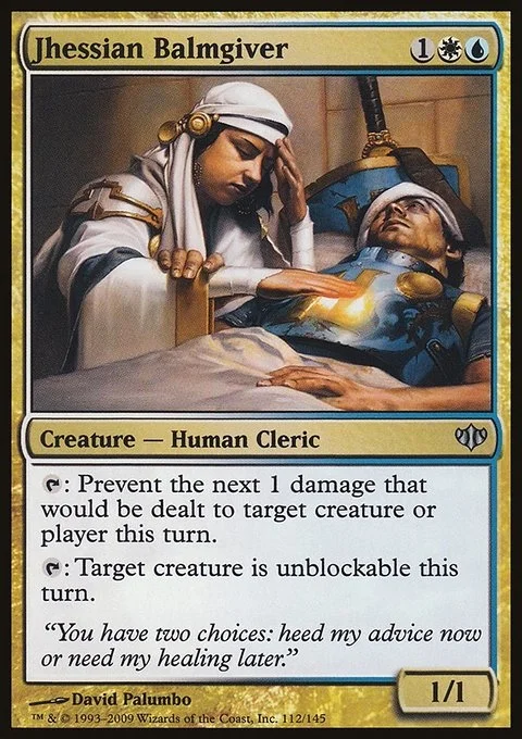 {T}: Prevent the next 1 damage that would be dealt to any target this turn. {T}: Target creature can't be blocked this turn.