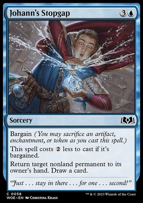 Bargain (You may sacrifice an artifact, enchantment, or token as you cast this spell.) This spell costs {2} less to cast if it's bargained. Return target nonland permanent to its owner's hand. Draw a card.