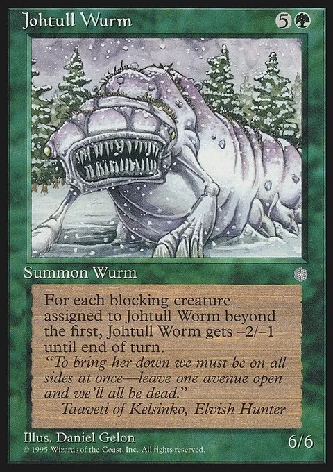 For each blocking creature assigned to Johtull Worm beyond the first, Johtull Worm gets -2/-1 until end of turn.