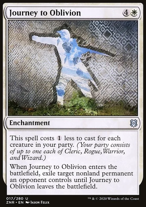 When Journey to Oblivion enters the battlefield, exile target nonland permanent an opponent controls until Journey to Oblivion leaves the battlefield.