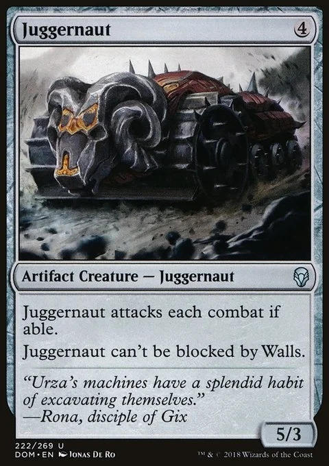 Juggernaut attacks each combat if able. Juggernaut can't be blocked by Walls.