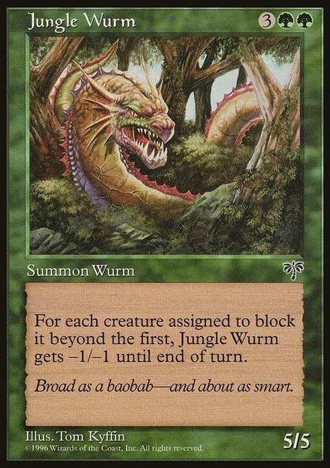 Whenever Jungle Wurm becomes blocked, it gets -1/-1 until end of turn for each creature blocking it beyond the first.