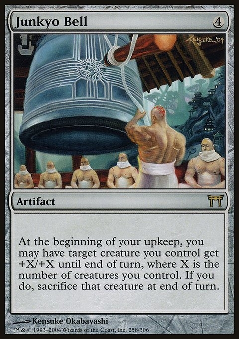 At the beginning of your upkeep, you may have target creature you control get +X/+X until end of turn, where X is the number of creatures you control. If you do, sacrifice that creature at the beginning of the next end step.