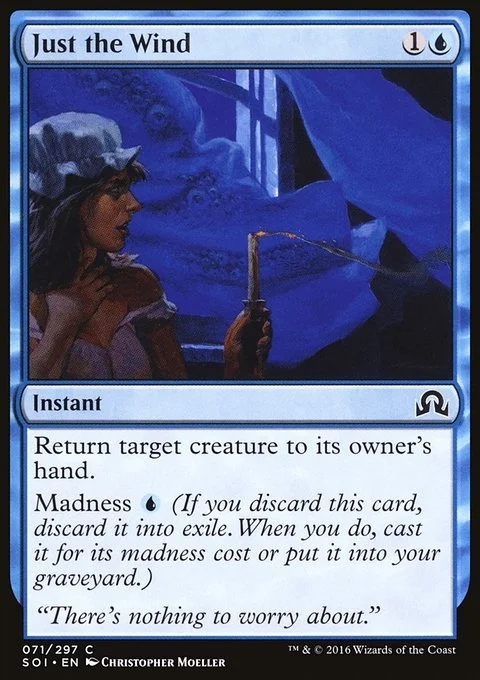Return target creature to its owner's hand. Madness {U} (If you discard this card, discard it into exile. When you do, cast it for its madness cost or put it into your graveyard.)