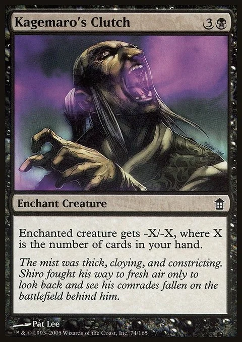 Enchant creature Enchanted creature gets -X/-X, where X is the number of cards in your hand.