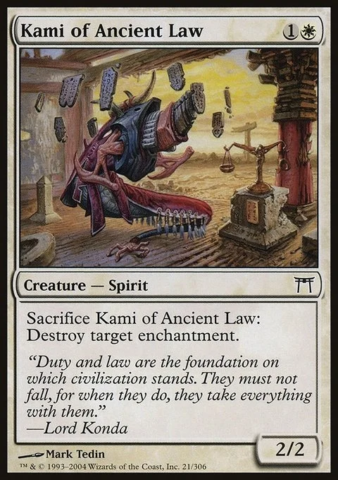 Sacrifice Kami of Ancient Law: Destroy target enchantment.