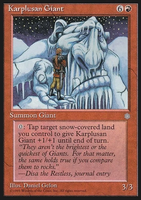 0: Tap target snow-covered land you control to give Karplusan Giant +1/+1 until end of turn.