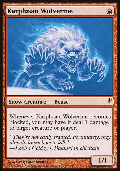 Whenever Karplusan Wolverine becomes blocked, you may have it deal 1 damage to any target.