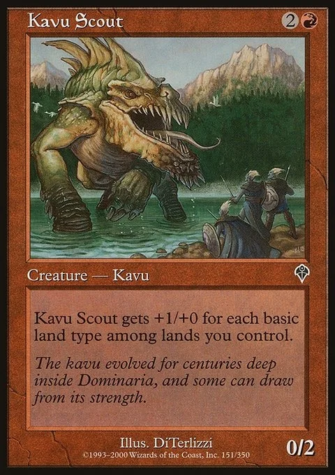 Domain — Kavu Scout gets +1/+0 for each basic land type among lands you control.