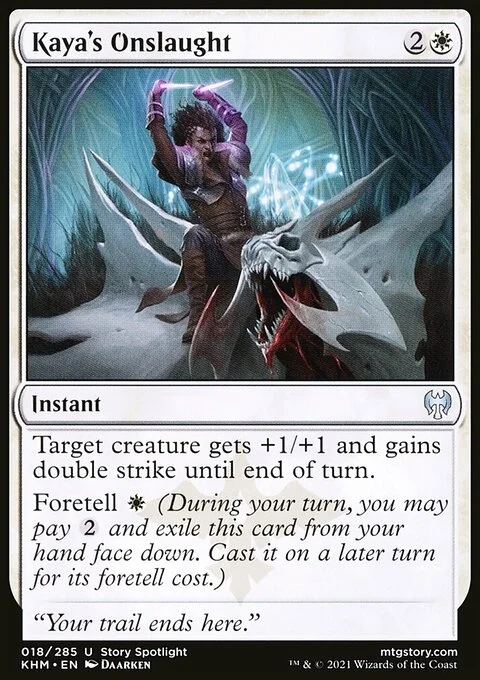 Target creature gets +1/+1 and gains double strike until end of turn. Foretell {W} (During your turn, you may pay {2} and exile this card from your hand face down. Cast it on a later turn for its foretell cost.)