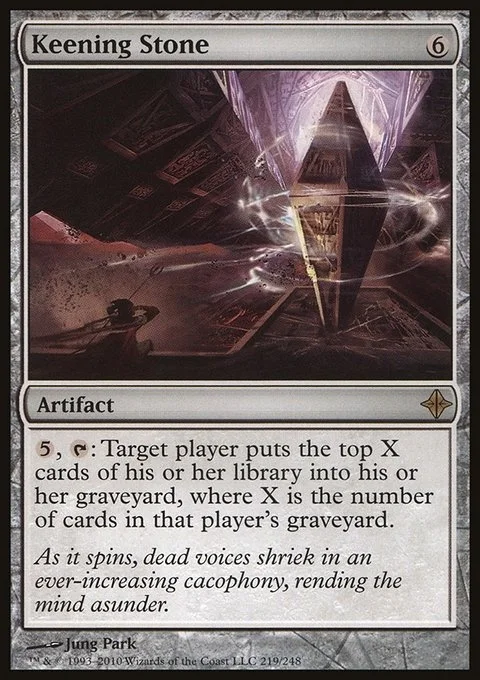 {5}, {T}: Target player puts the top X cards of their library into their graveyard, where X is the number of cards in that player's graveyard.