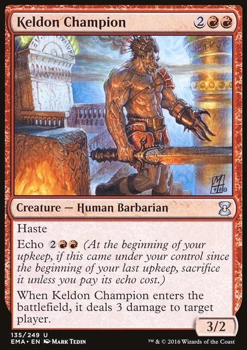 When Keldon Champion enters the battlefield, it deals 3 damage to target player or planeswalker.