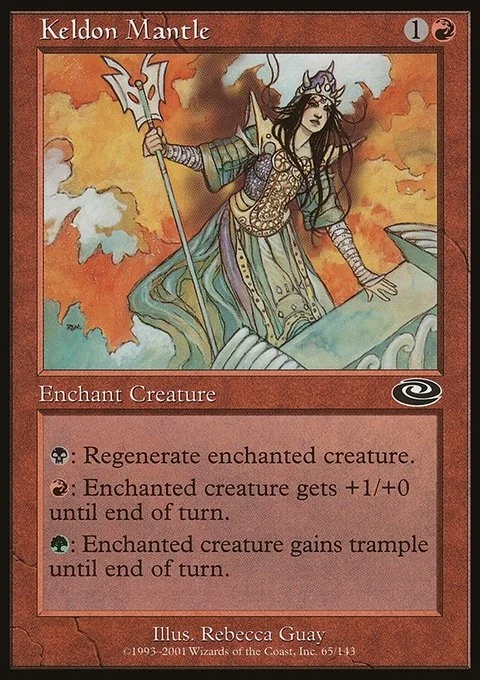 Enchant creature {B}: Regenerate enchanted creature. {R}: Enchanted creature gets +1/+0 until end of turn. {G}: Enchanted creature gains trample until end of turn.