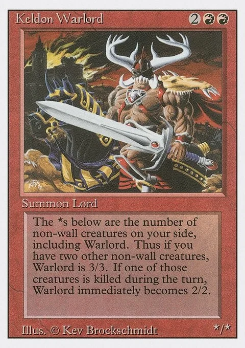 The *s below are the number of non-wall creatures on your side, including Warlord. Thus if you have two other non-wall creatures, Warlord is 3/3. If one of those creatures is killed during the turn, Warlord immediately becomes 2/2.