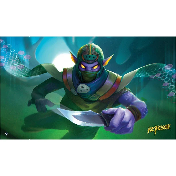 The Finishing Blow Playmat captures the moment of a sudden strike, characteristic of the scoundrels of Shadows. This House is filled with rogues, villains, thieves, con-artists, sometimes-assassins, and general ne’er-do-wells. Known for cleverness and speed, they repurpose whatever they lift from other Houses, and use the darkness from which they draw their House’s name to survive.