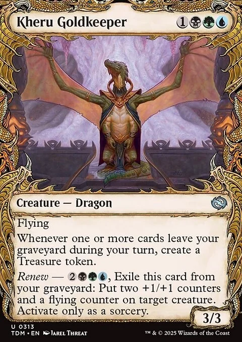 Whenever one or more cards leave your graveyard during your turn, create a Treasure token. (It's an artifact with "{T}, Sacrifice this token: Add one mana of any color.")