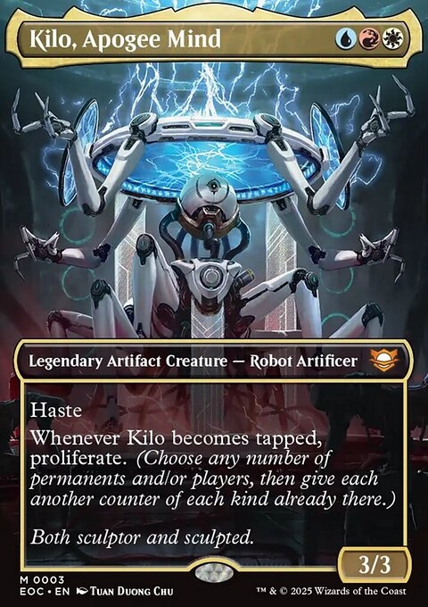 Haste Whenever Kilo becomes tapped, proliferate. (Choose any number of permanents and/or players, then give each another counter of each kind already there.)