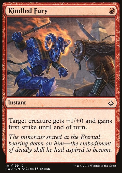 Target creature gets +1/+0 and gains first strike until end of turn. (It deals combat damage before creatures without first strike.)