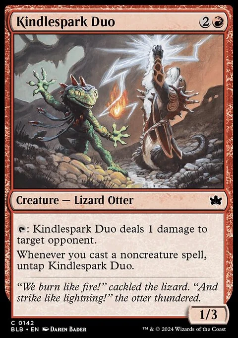 {T}: This creature deals 1 damage to target opponent. Whenever you cast a noncreature spell, untap this creature.