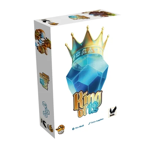 Players compete to become the new ruler of the Kingdom of 12. To do so, they’ll manipulate 12-sided orbs of power belonging to themselves and their opponents. Every game of King of 12 allows for a unique setup as 7 characters are chosen from the 12 distinctive characters available. Each turn players will secretly choose one character to play hidden in front of them. These characters such as The Oracle, The Sorcerer, or The Troublemakers will affect the orbs of power belonging to each player and thus impact the outcome of each round. Players will score points by keeping their own power orb high while cancelling or lowering the value of others. Critically, any players who score an equal amount of points each round have their points CANCELLED! A careful balance must be struck every turn as players seek to increase their points while keeping their total unique. Players who enjoy replayable, easy-to-learn, bluffing, and interactive gameplay will have a great time with King of 12.