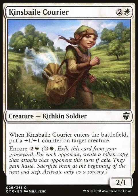 When Kinsbaile Courier enters the battlefield, put a +1/+1 counter on target creature.