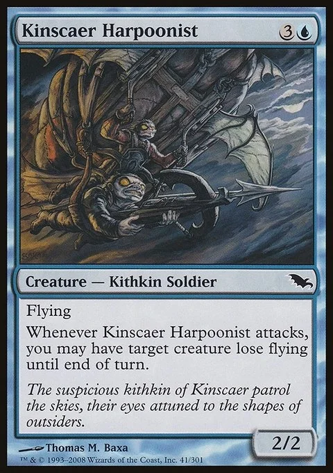 Flying Whenever Kinscaer Harpoonist attacks, you may have target creature lose flying until end of turn.