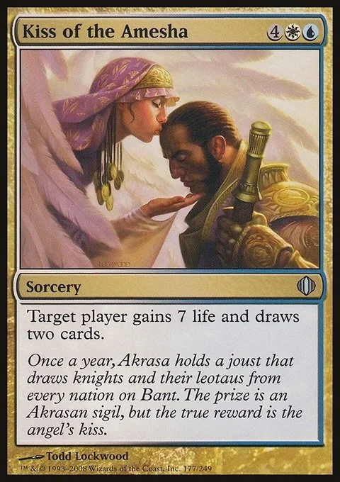 Target player gains 7 life and draws two cards.