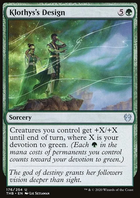 Creatures you control get +X/+X until end of turn, where X is your devotion to green. (Each {G} in the mana costs of permanents you control counts toward your devotion to green.)