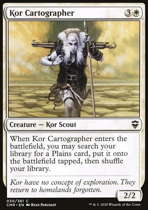 When Kor Cartographer enters the battlefield, you may search your library for a Plains card, put it onto the battlefield tapped, then shuffle.