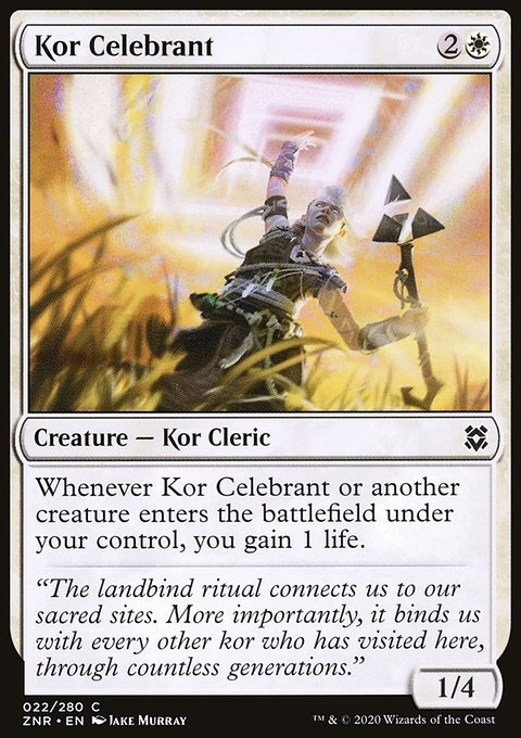 Whenever Kor Celebrant or another creature enters the battlefield under your control, you gain 1 life.